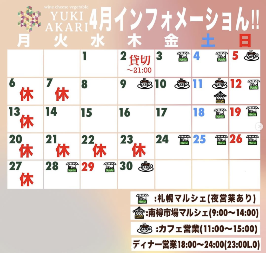 ※店休日は三連休などによる変動あり。また、店外営業・仕込み調整日により臨時で店休日を設けることがあります。詳しくはカレンダーをご参照ください。